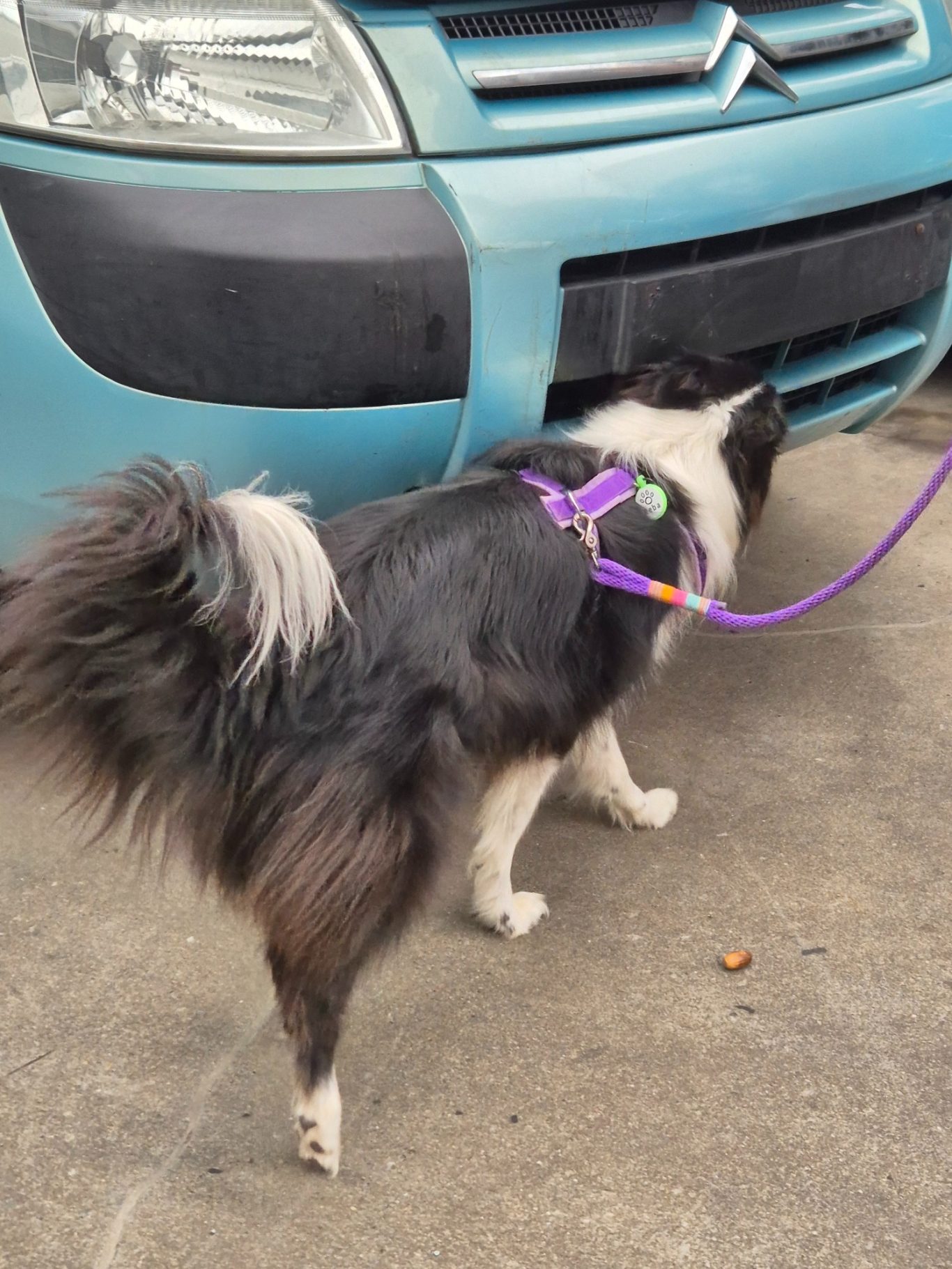 Parkeer buiten het hek. De hond kan daar zijn behoefte doen op de groenstrook, echter ruim de ontlasting wel op.