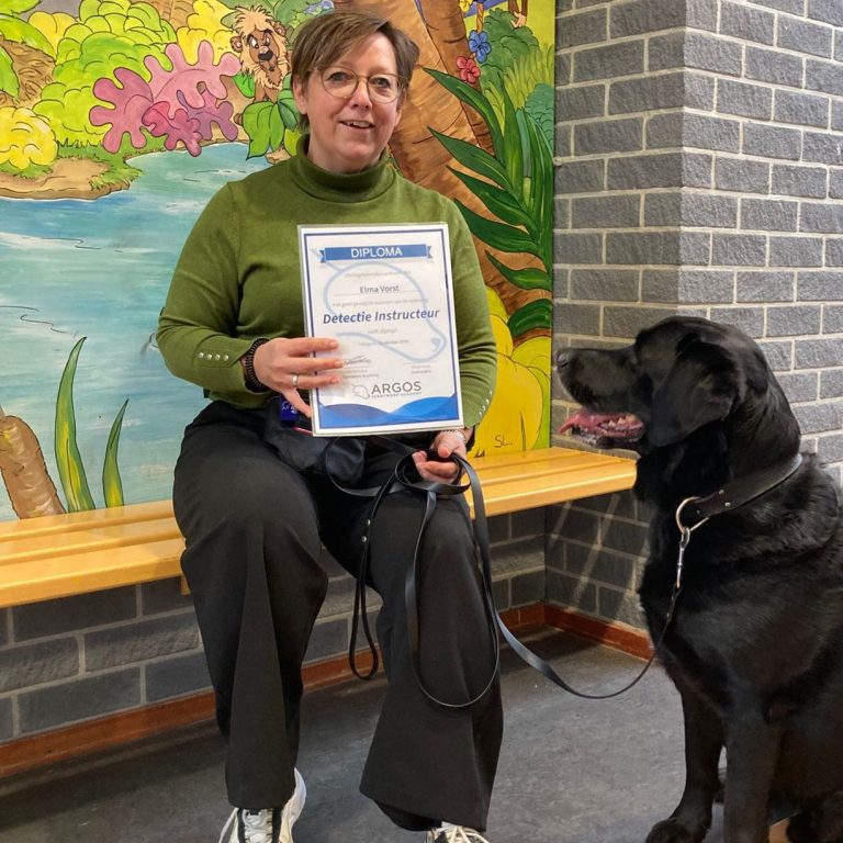 Ik zocht naar een hondenschool waar neuswerk/detectie werd gegeven. Ik kwam bij Argos Scentwork Academy uit in Hillegom. Daar volgden we eerst een onlinecursus en daarna privélessen in de hal. Zodra we meer ervaring hadden gingen we ook op locaties zoeken, bijvoorbeeld op een tribune of in een school. We behaalden hiermee ook verschillende detection trails. Zelfs een wedstrijd was niet te gek voor Sep. We behaalden de tweede plek op niveau 3 en later ook de tweede plek bij de elite! Hier is onze hobby echt uitgegroeid tot mijn eigen detectieschool.
